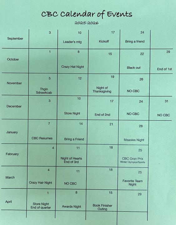 CBC kicks off on Wednesday, September 17, 2025 and runs through April 2026