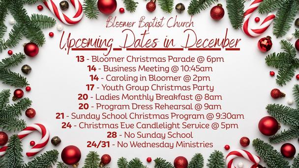 We hope you and your family enjoy this gift from all of us here at Bloomer Baptist Church.